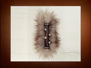 Le vison se porte à même la peau offrant une sensation tendre et chaleureuse qui contraste avec la dureté et la froideur du métal. Les pierres sont comme une étincelle ou une goutte de condensation induite par ce chaud-froid.